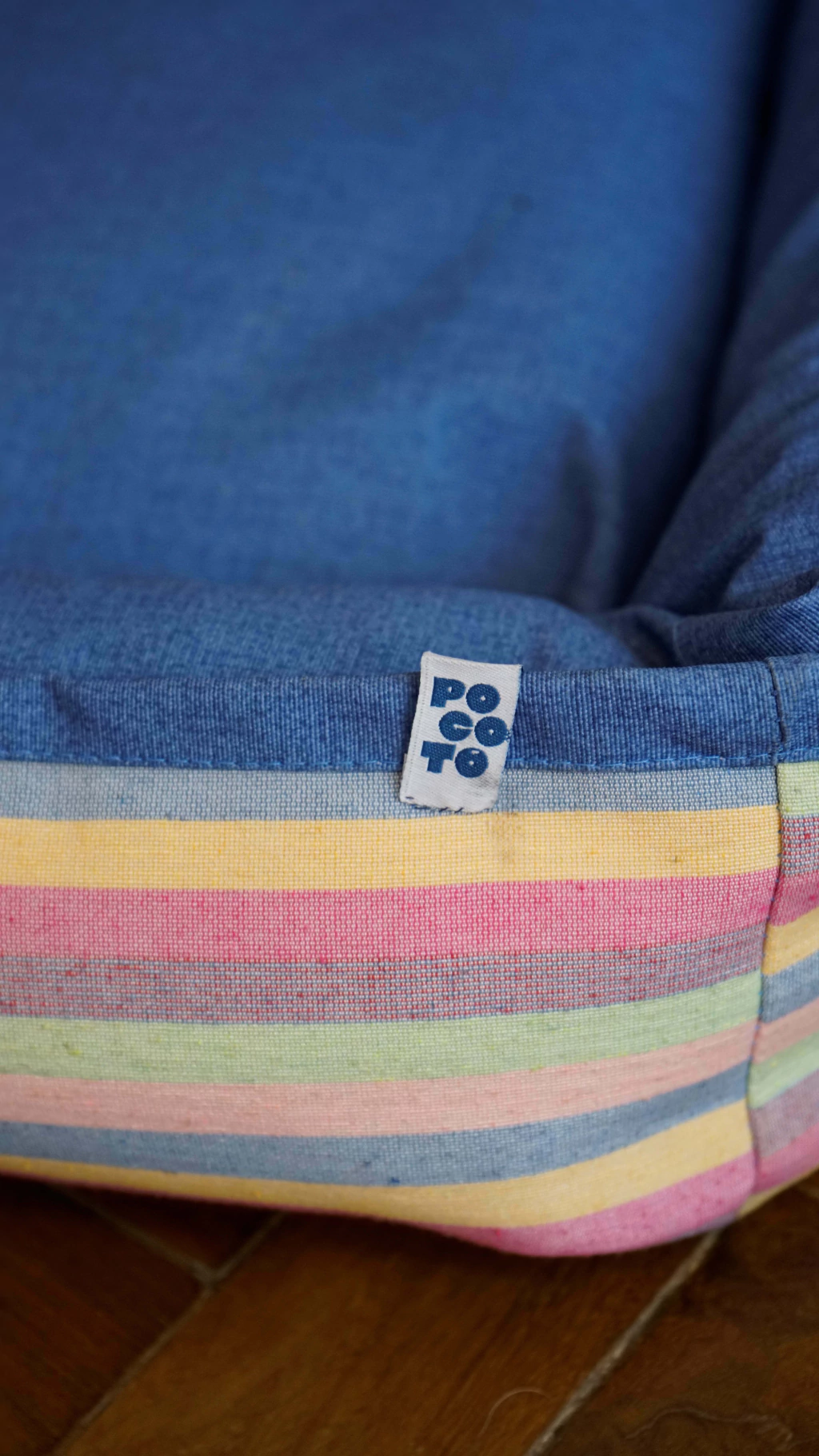 Cama para pet de tecido de algodão, as partes internas de tecido impermeável Aqua Tec azul, não desbota e não cria bolinhas. Possui zíper em todas as laterais, facilitando a lavagem.