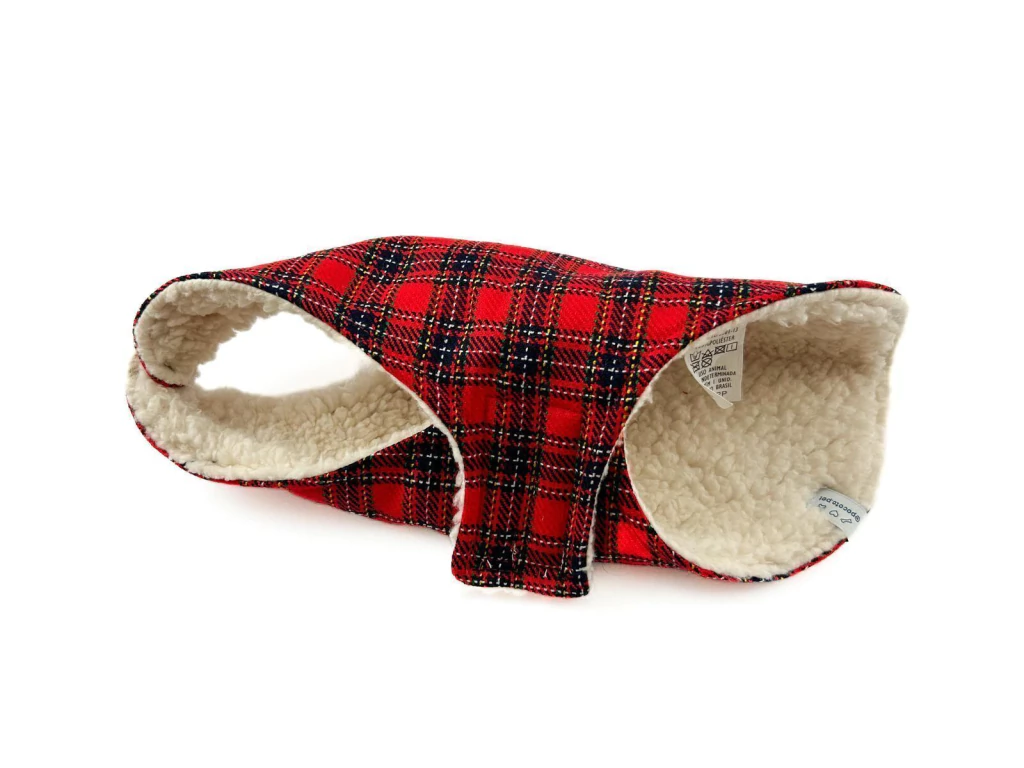 Transforme seu pet em um ícone de estilo com esta capinha em tecido xadrez vermelho!